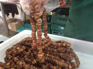 Prima di “catapultarvi” nei dolci ricordi dell’infanzia, devo rammentarvi che questo prodotto è ormai introvabile. Dolci e morbide, le castagne essiccate lentamente e non completamente vengono poi sapientemente affumicate e infilate una a una a formare una collana. Infatti, si chiamano tenerelle oggi! Trovare l’antica ricetta è stata una vera caccia al tesoro: ormai solo qualche bottega di quartiere sa produrle.