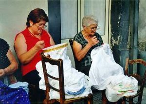 Dalle mani delle ricamatrici uscivano finemente lavorate lenzuola, copriletti, tovaglie, ecc. richieste da famiglie con figlie desiderose di avere un corredo dignitoso e di un certo gusto.